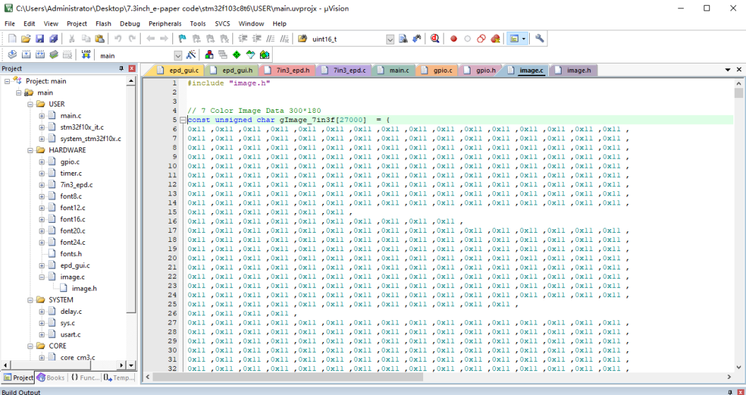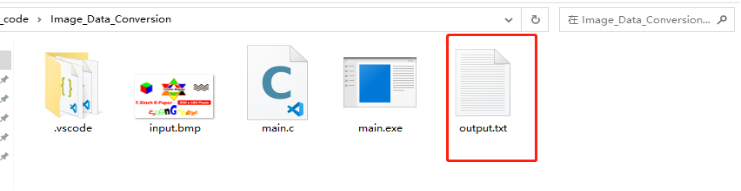 2. 打开文件output.txt,复制其所有内容,将image.c文件中的图像数据替换为该文件,然后单击保存。