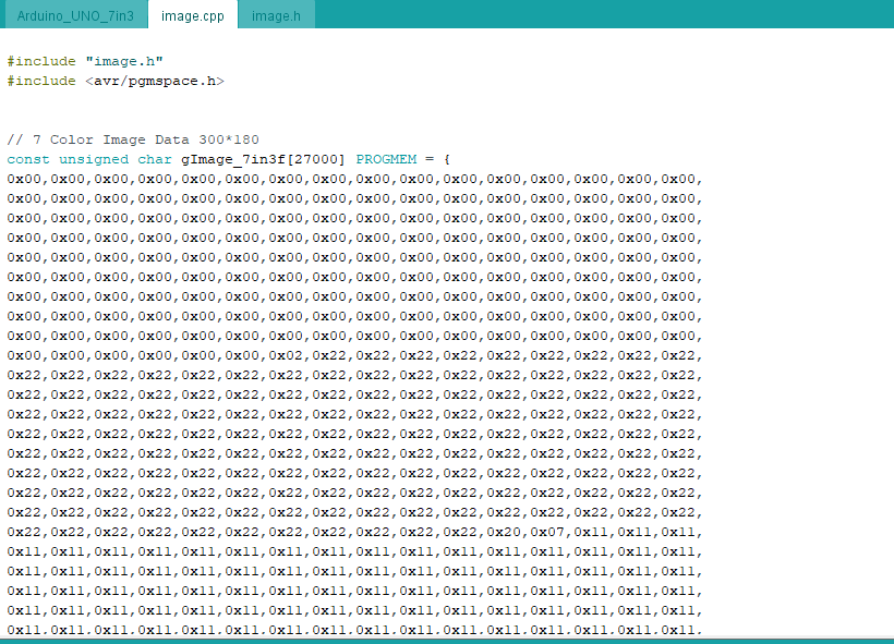 2.打开output.txt文件,复制其所有内容,用它替换image.cpp文件中的图像数据,然后单击保存。