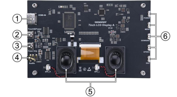 ①.HDMI 输入接口:用于将显示器与支持HDMI标准的设备相连接。