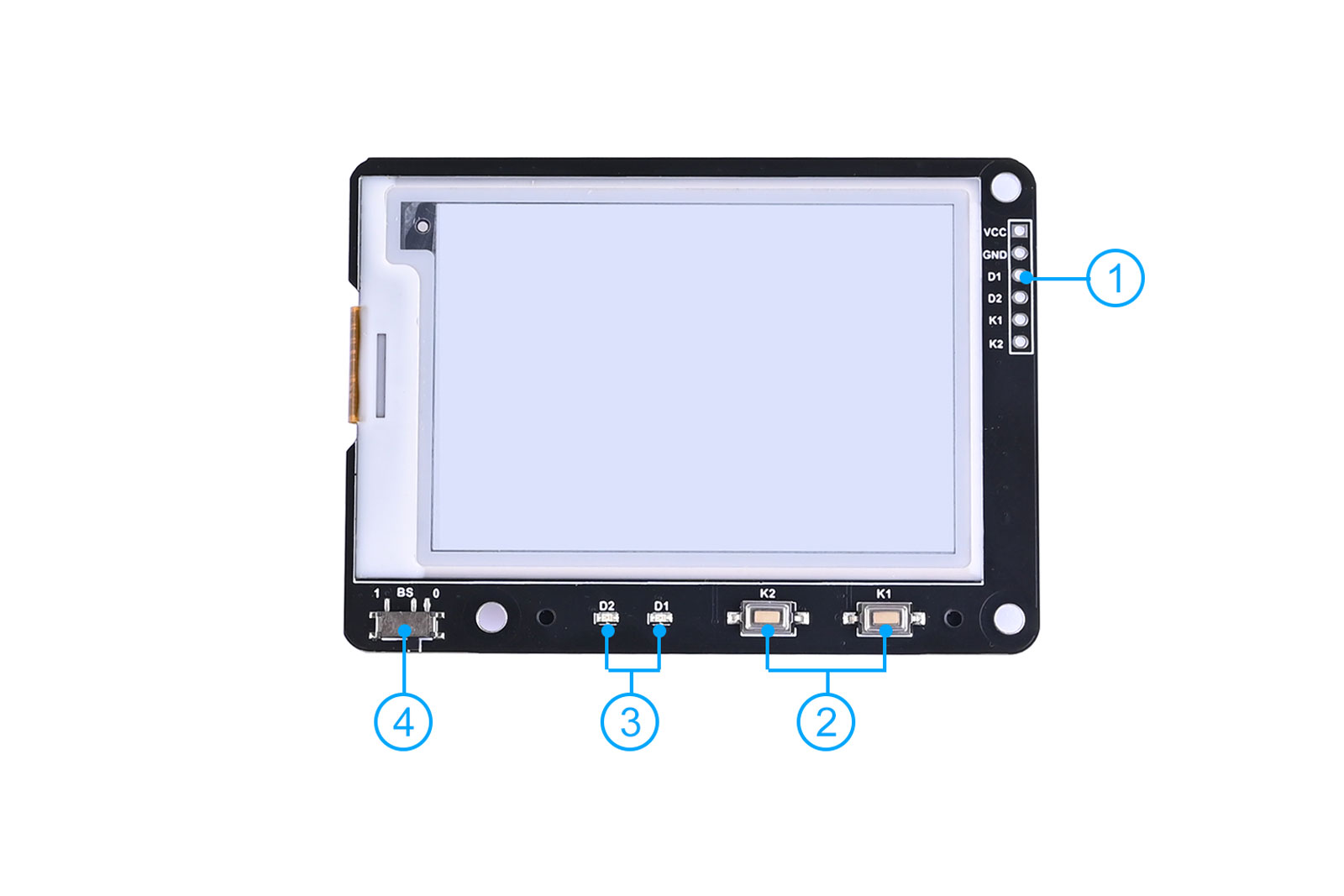 “(见图4-2中的2)运行程序,然后观察墨水屏显示。“(见图 2-4 中的 2)运行程序,然后观察墨水屏显示。