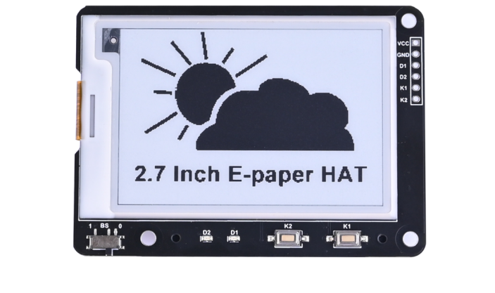 本产品是一款2.7英寸电子墨水屏扩展模块,基于树莓派40PIN接口设计,适用于树莓派系列主板。我们提供树莓派的C和Python版本演示码,并预留SPI控制接口,方便访问Arduino、STM32等主控板。我们还提供Arduino、STM32、ESP32版本演示码,可实现图片显示、英文和数字字符显示,以及点、线、矩形、圆形绘制。