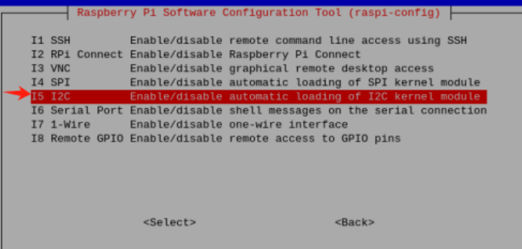 要在 Raspberry Pi 上配置 I2C,请启动系统配置以: