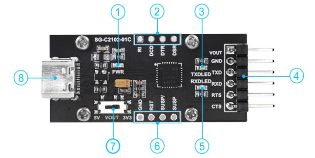 USB 转 UART 串行模块 CP2102 Type-C 连接器