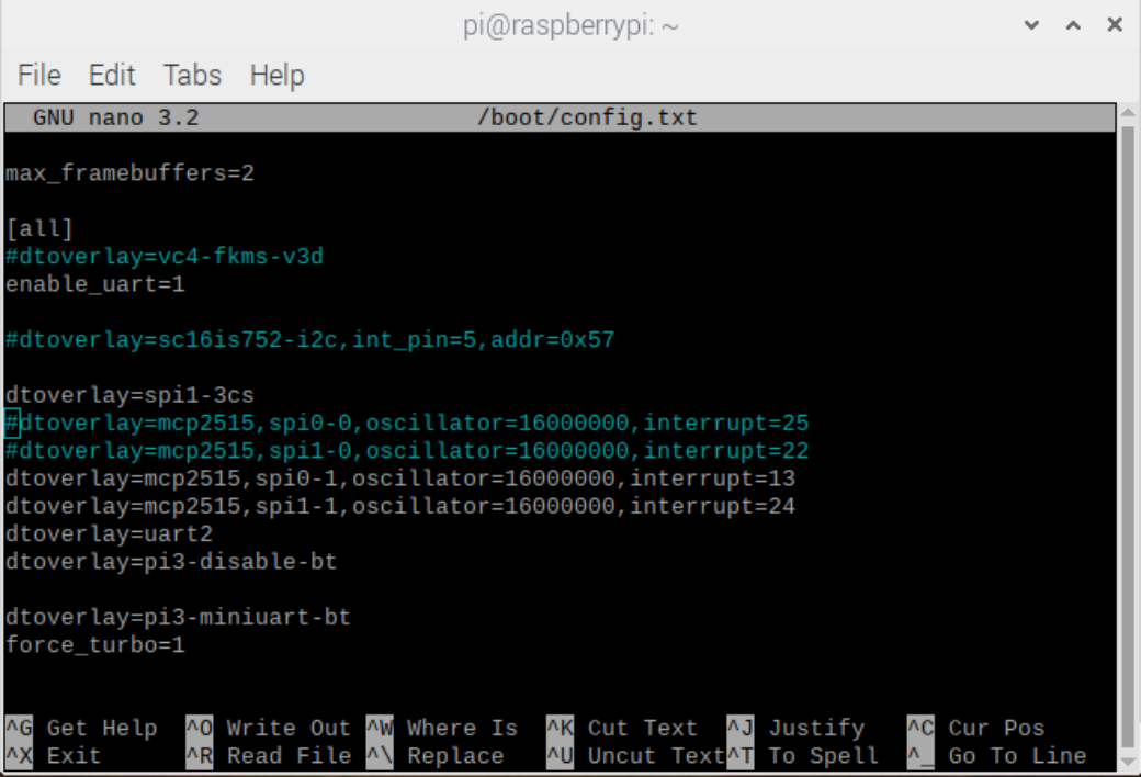 sudo nano /boot/config.txt |