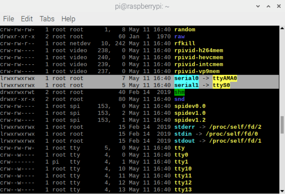 然后,保存更改并退出。此时,重新打开终端并输入命令“ls /dev -al”。您将观察到串行端口映射已被强制更改;主串行端口“Serial0”现在指向硬件 UART“ttyAMA0”。