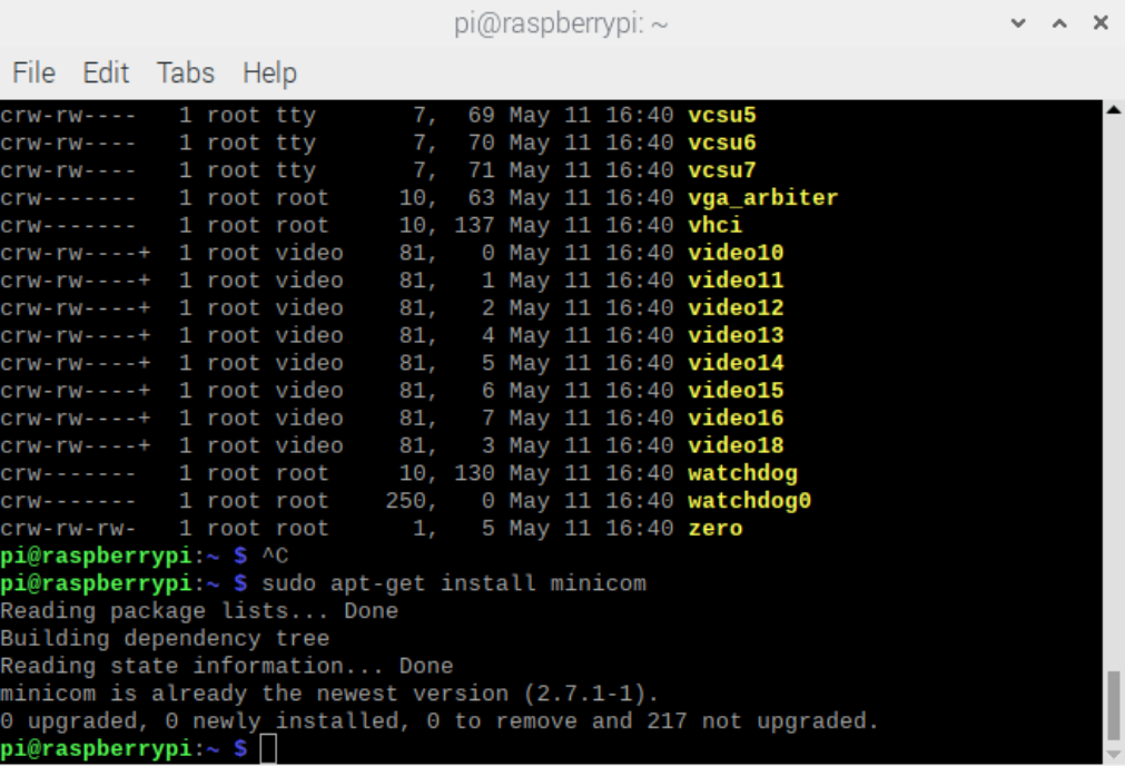 运行“minicom -D /dev/ttyAMA0 -b 115200”以访问串行工具。