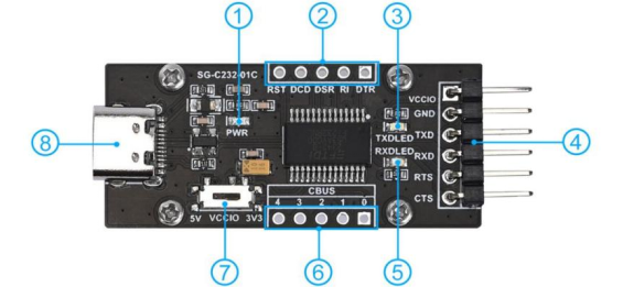 USB 转 UART 串口模块 FT232 Type-C 连接器