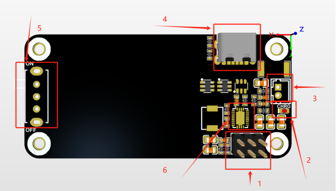 3.板载带路径管理的锂电池充电芯片和升压芯片,支持动态路径管理,稳定5V电压输出。