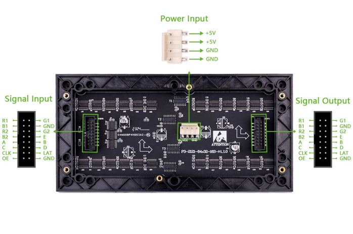 - 板载两个 HUB75 接口,分别用于输入与输出,可实现多屏级联;
